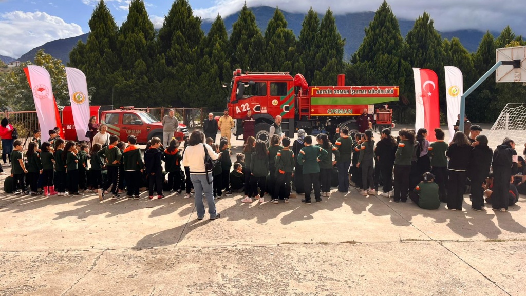 ORMAN SEVGİSİ,AĞAÇ SEVGİSİ,SÜRDÜRÜLEBİLİR CANLI ÇEŞİTLİLİĞİNİN SAĞLANMASI,ORMANLARIMIZI KORUMANIN ÖNEMİ,ORMANLARIMIZI KORUMAK İÇİN NELER YAPMAMIZ GEREKTİĞİ KONULARINDA BİLGİLENDİRME ÇALIŞMASI VE ORMAN YANGIN ARACI TANITIMI YAPILDI.